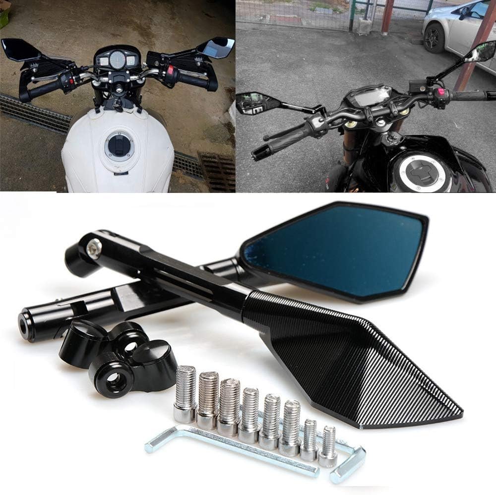 مرايا الرؤية الخلفية للدراجات النارية مصنوعة من الألومنيوم و زجاج عالي الجودة عالية الجودة، مما يوفر لك دقة عالية ومجال رؤية أوسع، ورؤية السيارات والعوائق القادمة بسهولة، وتحسين تجربة القيادة الآمنة.